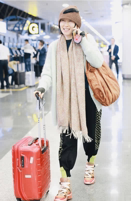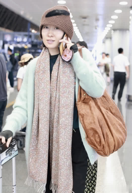 白色的开衫同样也是非常温柔的,再加上海马毛的面料,让整个人看起来软糯又亲切。不过白色的开衫单穿的话就会显得比较普通,而刘敏涛又搭配了一条粉色的羊毛围巾,围巾就这样敞开在胸前,而不是系成一圈,反而更增添了整体的时髦感。