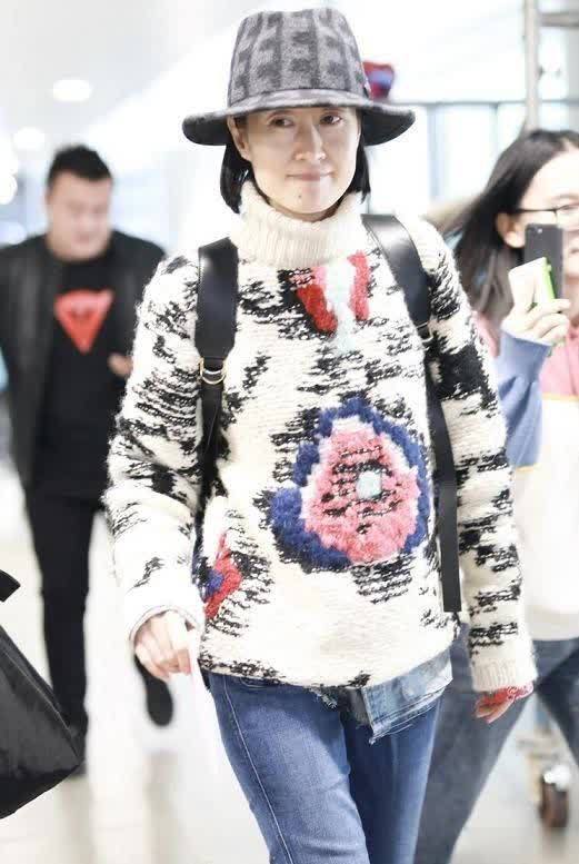 高领毛衣在秋冬季节很常见,不仅防风又非常的保暖,像一些脖子比较短的女孩,穿上高领毛衣以后就有自然而然的拉长效果。刘敏涛身上的这件高领毛衣设计还是比较足的,又搭配上高高的爵士帽,衬托的整个人优雅又强势。