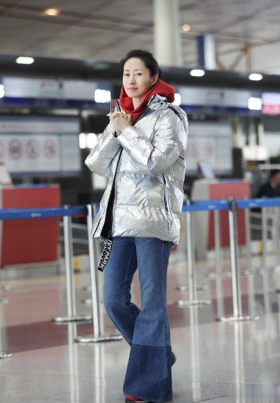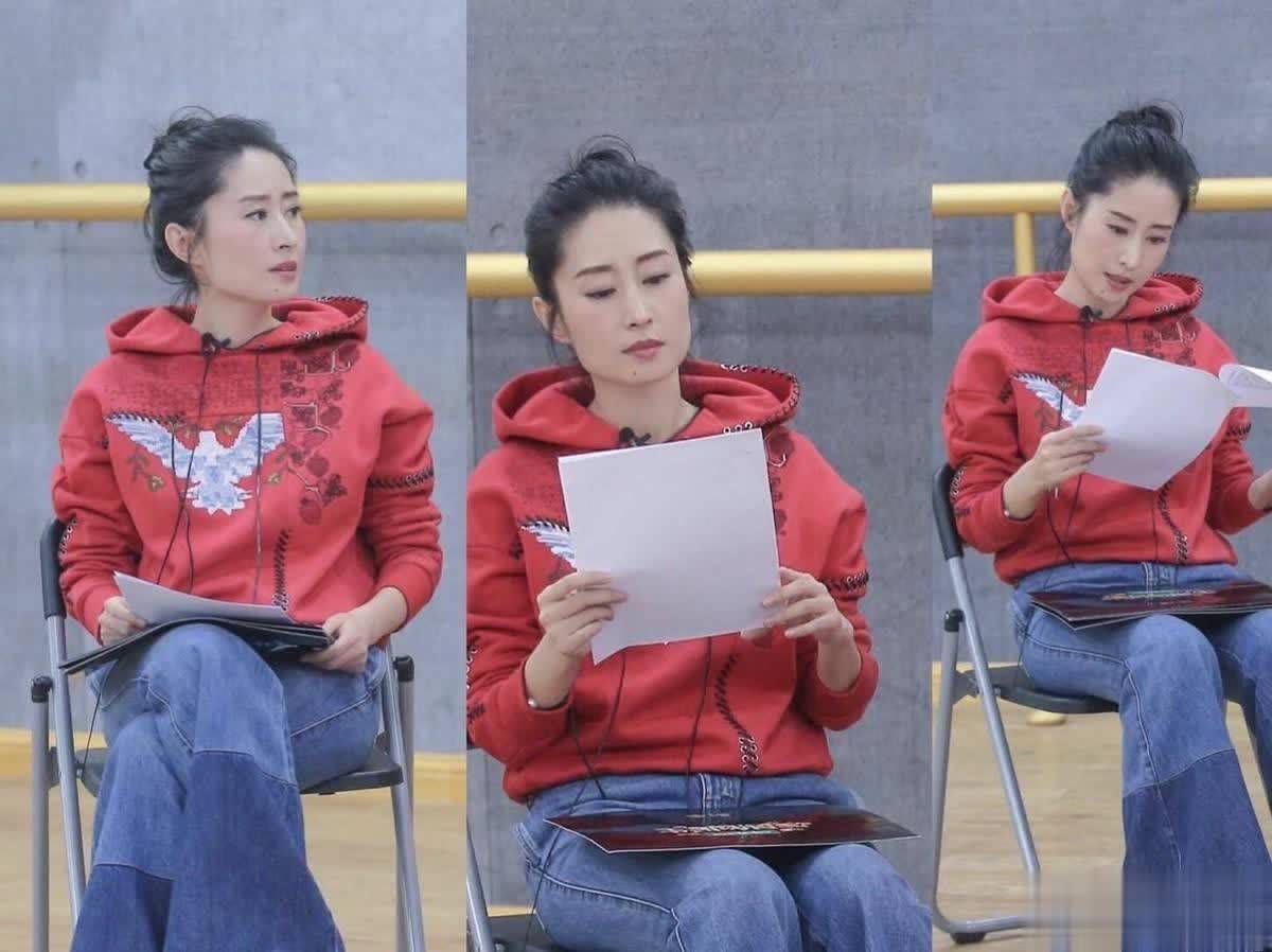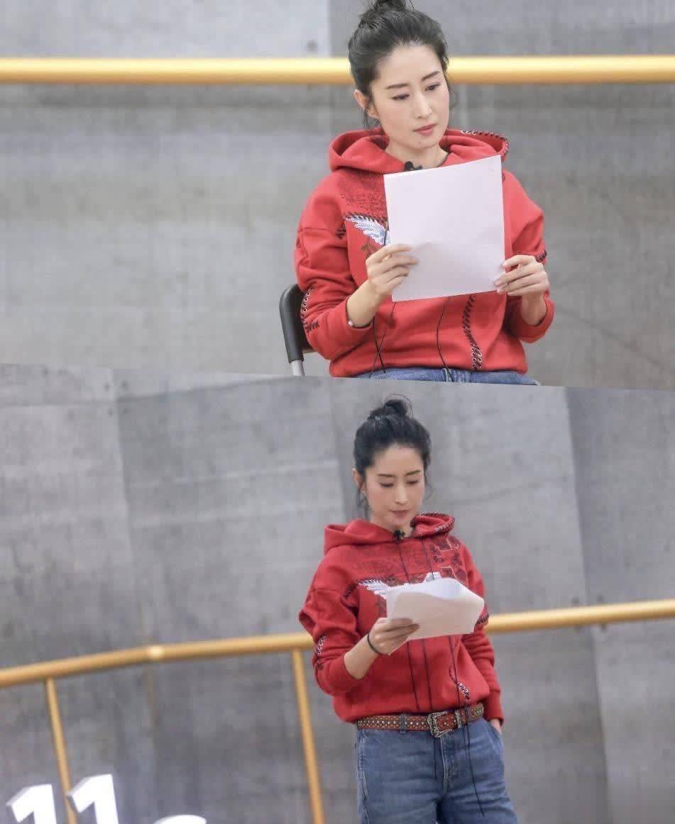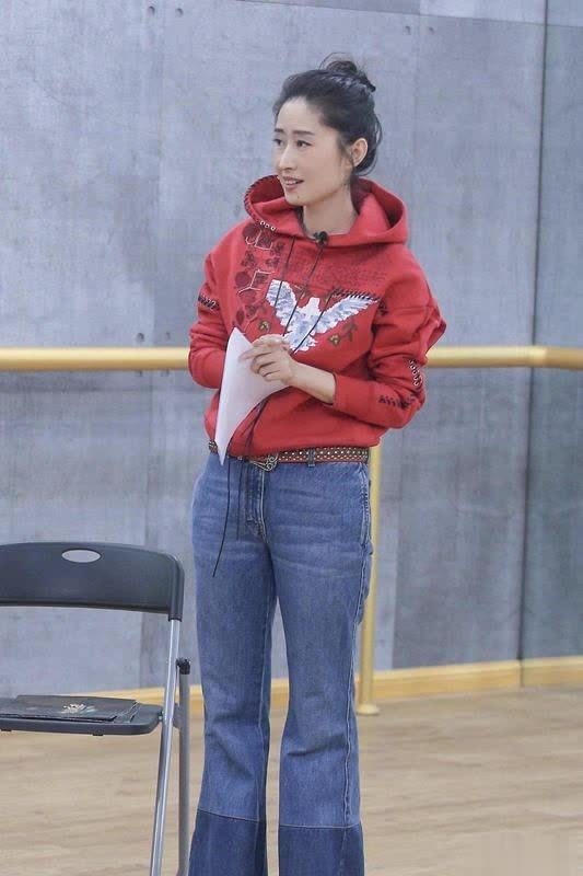 48岁刘敏涛扎丸子头穿红卫衣牛仔裤,洋气高级又减龄